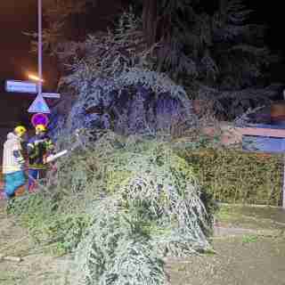 Kurz nach 20 Uhr wurde der Löschbereich Wollmatingen zu einem umgestürzten Baum in den Gutenbergweg gerufen. Der Baum blockierte teilweise die Kreuzung Gutenbergweg/ Buhlenweg und behinderte den Verkehr. Mit Hilfe einer Motorsäge wurde der Baum zerkleinert und anschließend von der Straße geräumt.