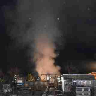 Die Hütte war auf Grund der bereits fortgeschrittenen Brandausbreitung nicht mehr zu retten und brannte vollständig nieder. Jedoch konnte ein Übergreifen des Feuers durch zwei Trupps unter Atemschutz und dem Einsatz mehrerer Strahlrohre verhindert werden. Während der Löscharbeiten wurden zwei Gasflaschen aus der Brandrouine geborgen.