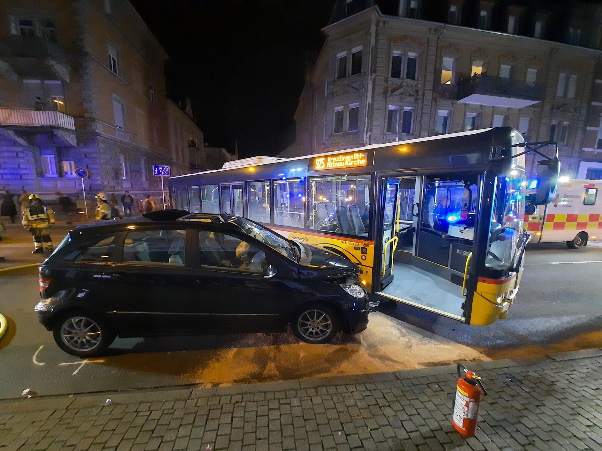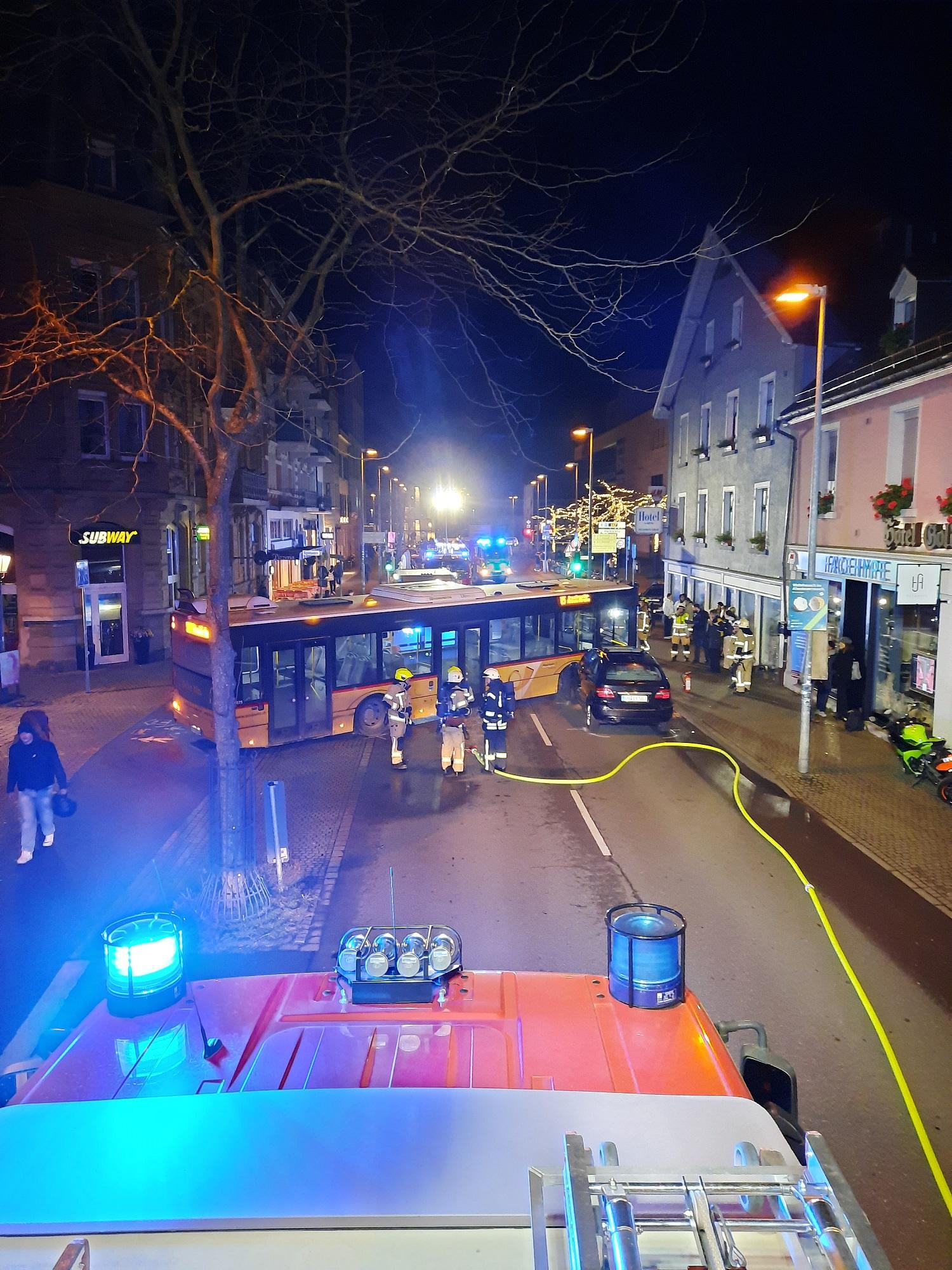 Um 21:54 Uhr wurde die hauptamtliche Wache sowie der Löschbereich Altstadt alarmiert. Vor Ort konnten die Kräfte des Feuerwehramtes entgegen der Alarmmeldung keinen PKW-Brand feststellen. Sie stellten aber im Rahmen der Erkundung fünf verletzte Personen fest. Diese wurden durch die Feuerwehr bis zum Eintreffen des Rettungsdienstes versorgt.