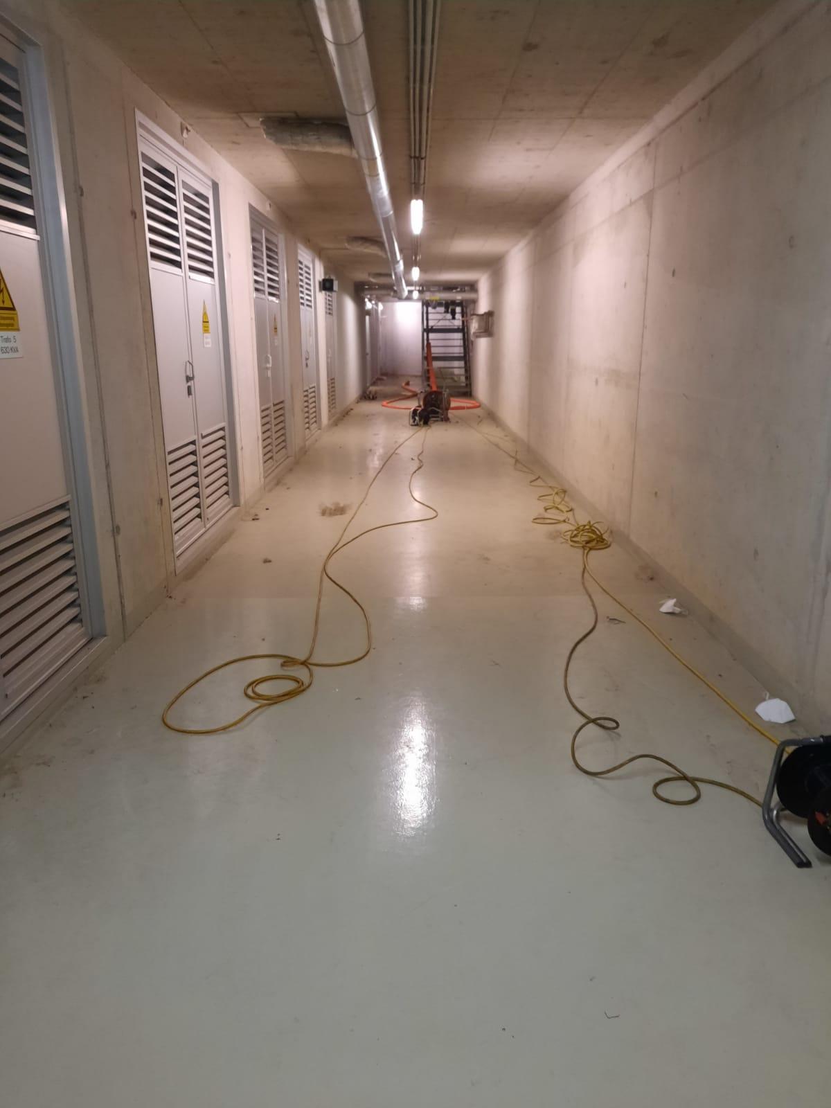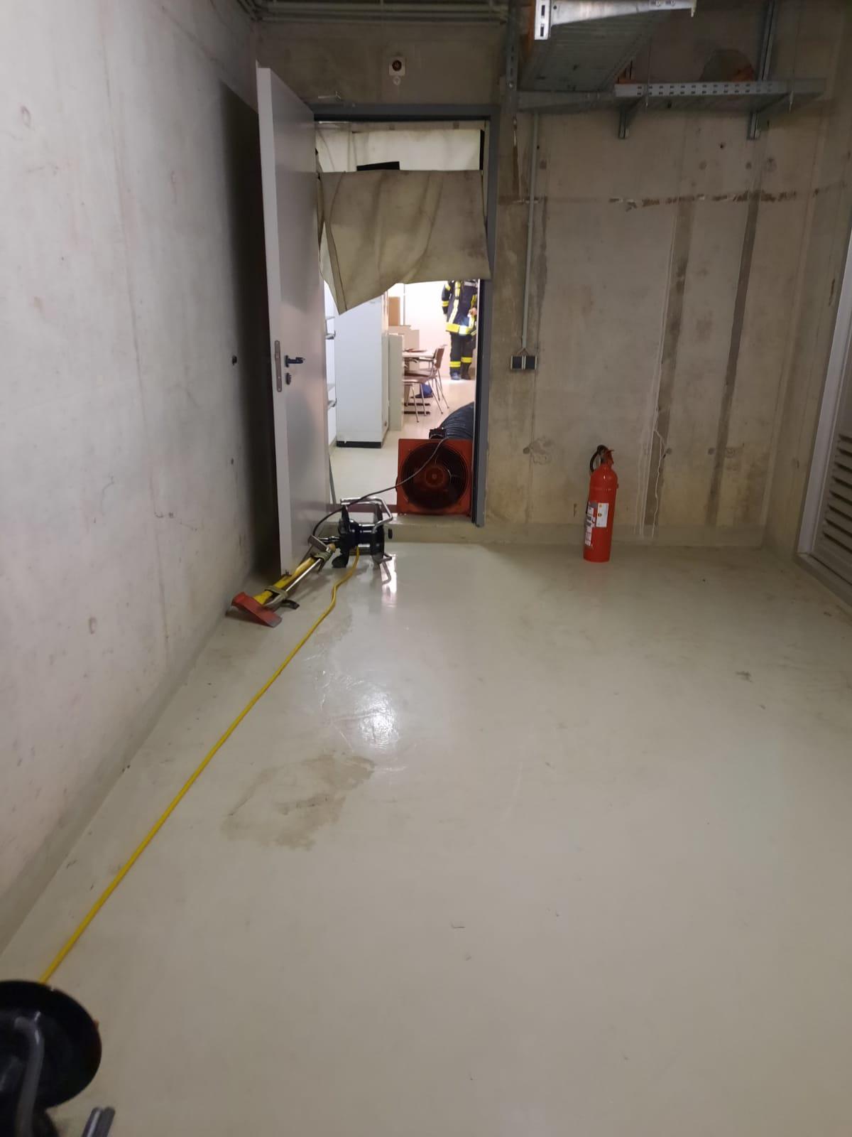 Die Räumlichkeiten im Untergeschoss wurden mittels Be-, und Entlüftungsgerät und zusätzlichen Überdrucklüfter belüftet, sowie entraucht.