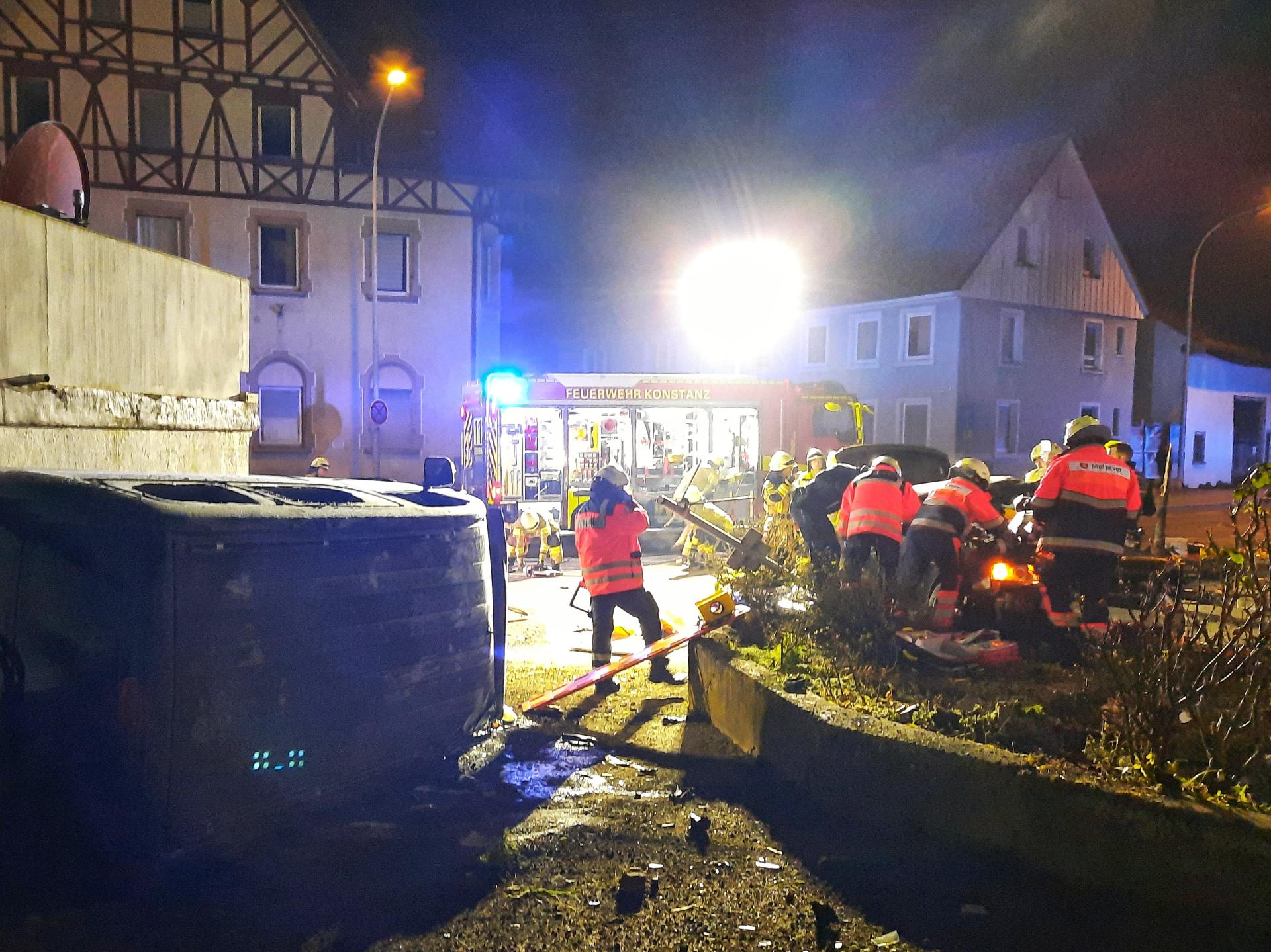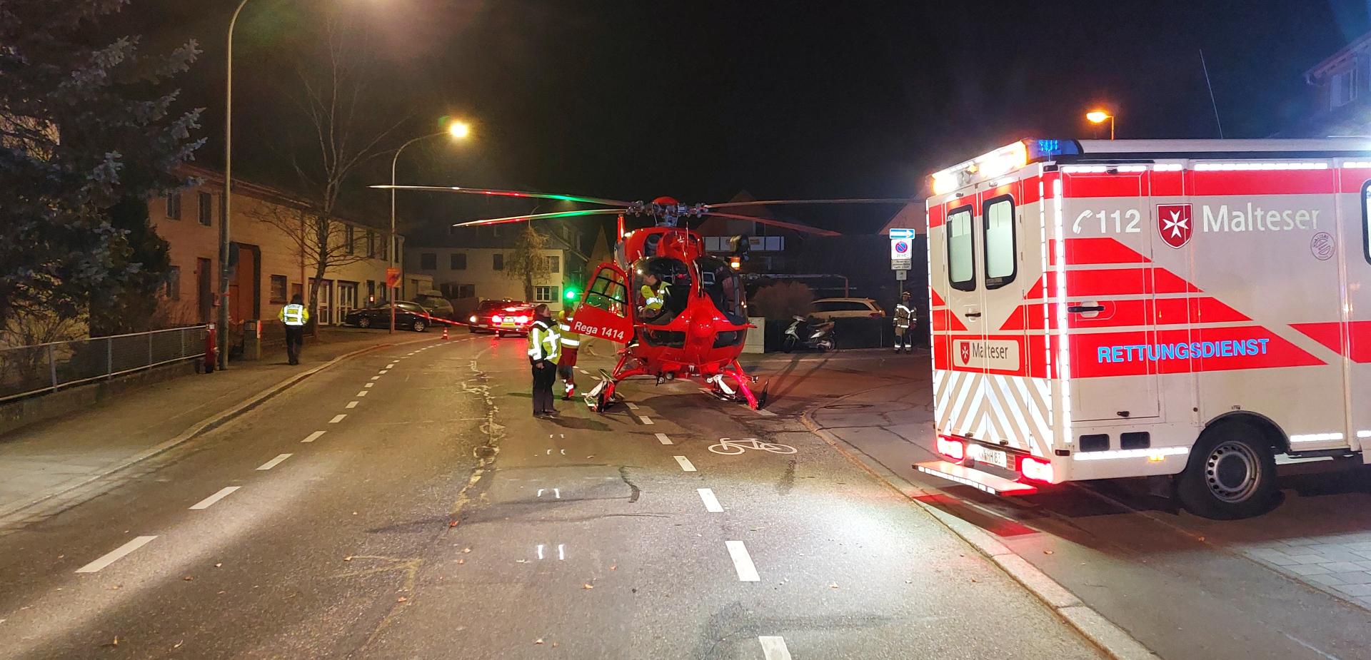 Die Radolfzeller Straße war während des Einsatzes für den Verkehr komplett gesperrt. Für die Landung des Rettungshubschraubers wurde die Straße ausgeleuchtet.