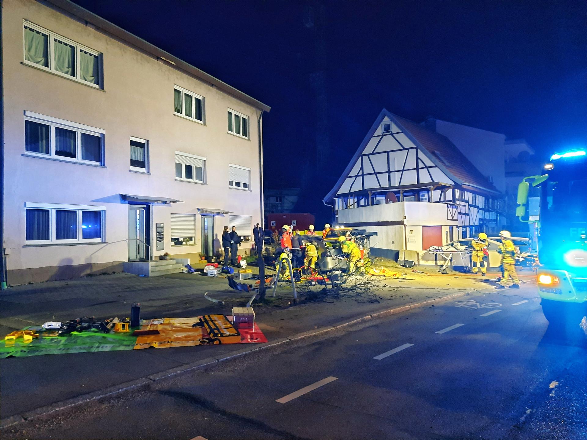 Vor Ort wurden zwei stark beschädigte Fahrzeuge vorgefunden. Bei der ersten Lageerkundung konnten in einem Fahrzeug noch zwei Personen festgestellt werden.