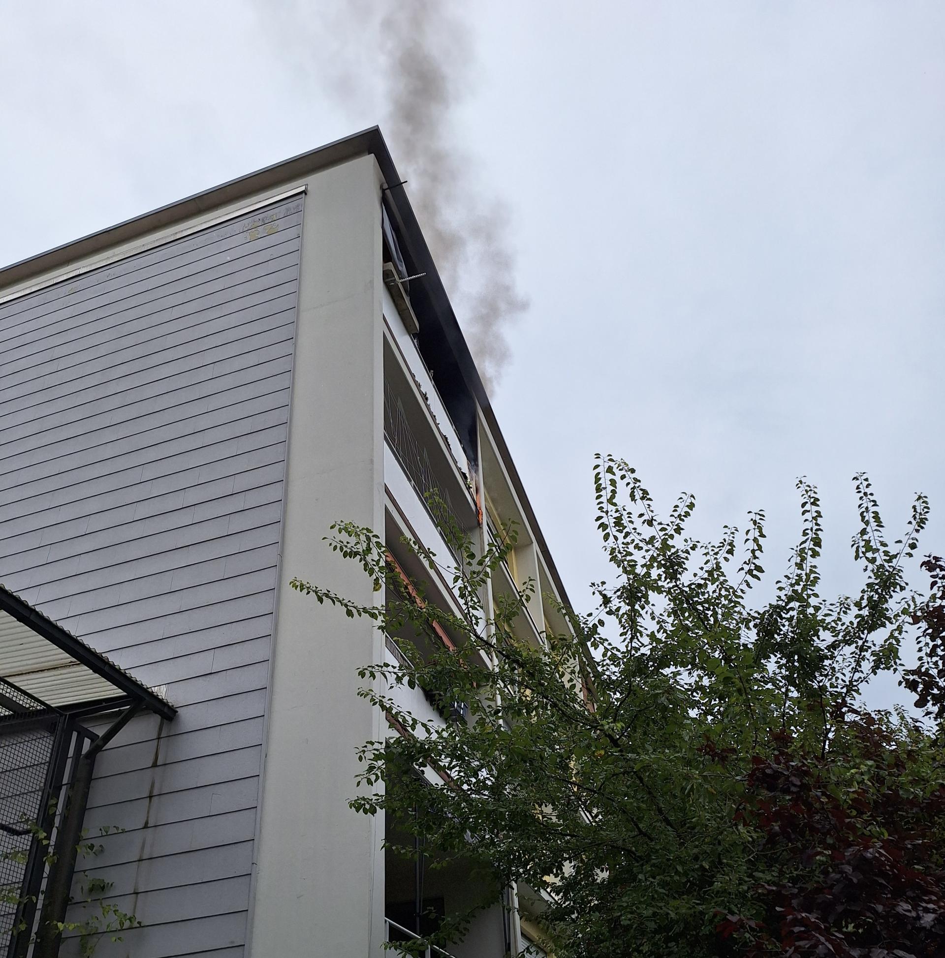 Auf einem Balkon im 4. Obergeschoss kam es gegen kurz nach 14 Uhr zu einem Brand. Die ersten Kräfte löschten von außen mit einem C-Rohr die sichtbaren Flammen ab. Parallel ging ein Trupp unter Atemschutz in die betroffene Wohnung vor. Die Wohnung selbst war nicht betroffen, da die Balkontüre den Flammen standgehalten hatte. Der Trupp löschte die restlichen Flammen ab und kontrollierte im Anschluss mit der Wärmebildkamera die Brandstelle auf weitere Glutnester.