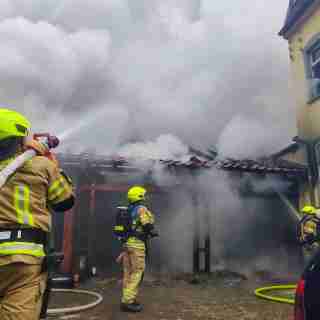 Zwei Personen konnten durch die Feuerwehr aus dem nebenstehenden Gebäude gerettet werden.