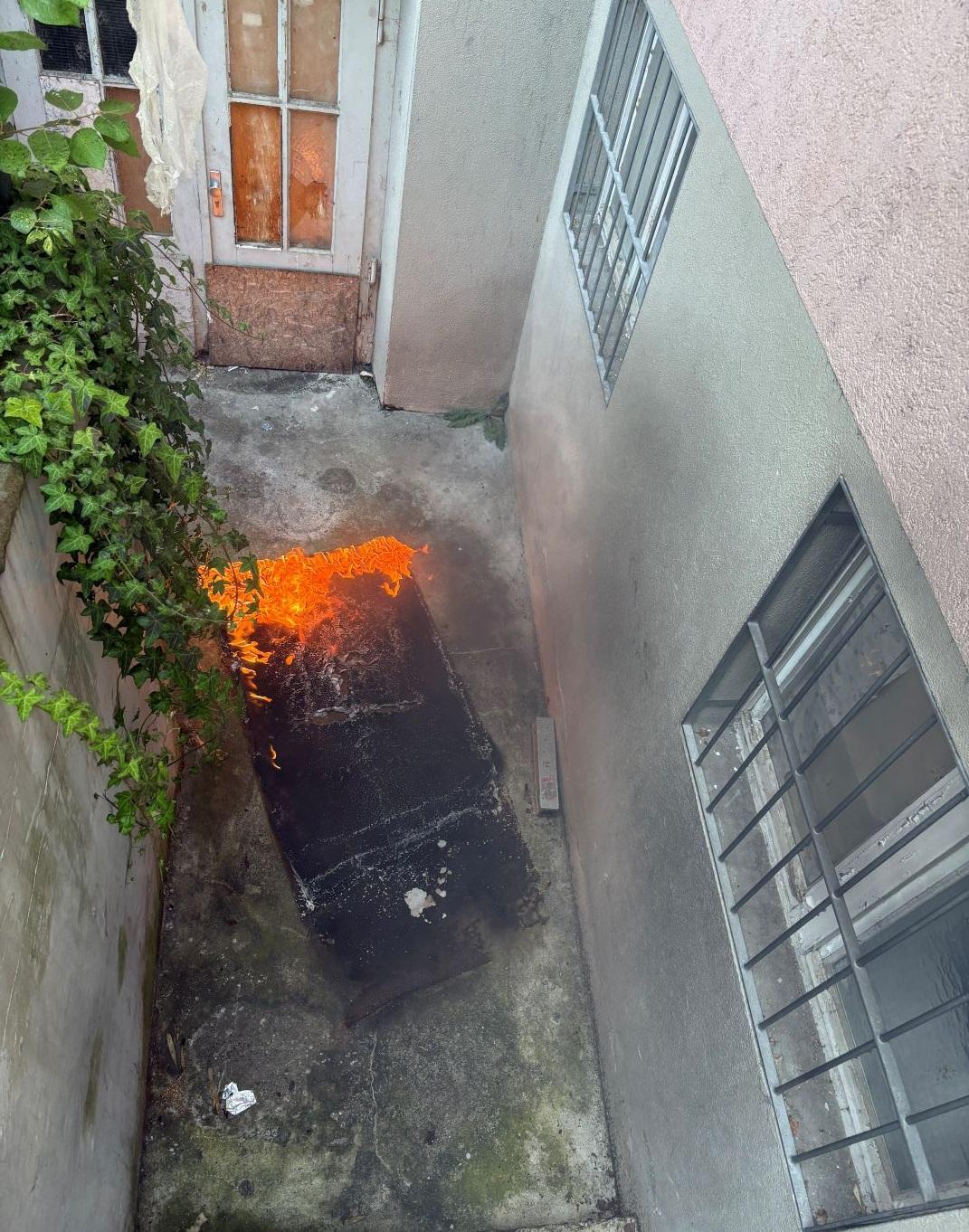 Im Rahmen der Erkundung stellte sich heraus, dass im Gebäude eine Matratze gebrannt hatte. Durch das schnelle Eingreifen von Bewohnern wurde die brennende Matratze aus einem Fenster ins Freie befördert, sodass sich der Brand nicht im Gebäude ausbreiten konnte.