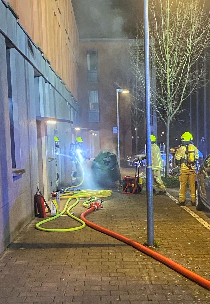 Beim Eintreffen der Einsatzkräfte der Hauptamtlichen Wache sowie der Abteilung Petershausen war eine starke Rauchentwicklung aus einem Müllraum feststellbar. Ein Trupp unter Atemschutz stellte im Gebäude einen brennenden Müllcontainer fest und löschte diesen ab. Parallel wurde der Treppenraum des Gebäudes kontrolliert. Nachdem der Brand gelöscht war, wurde der Müllraum auf weitere Glutnester mittels Wärmebildkamera kontrolliert.