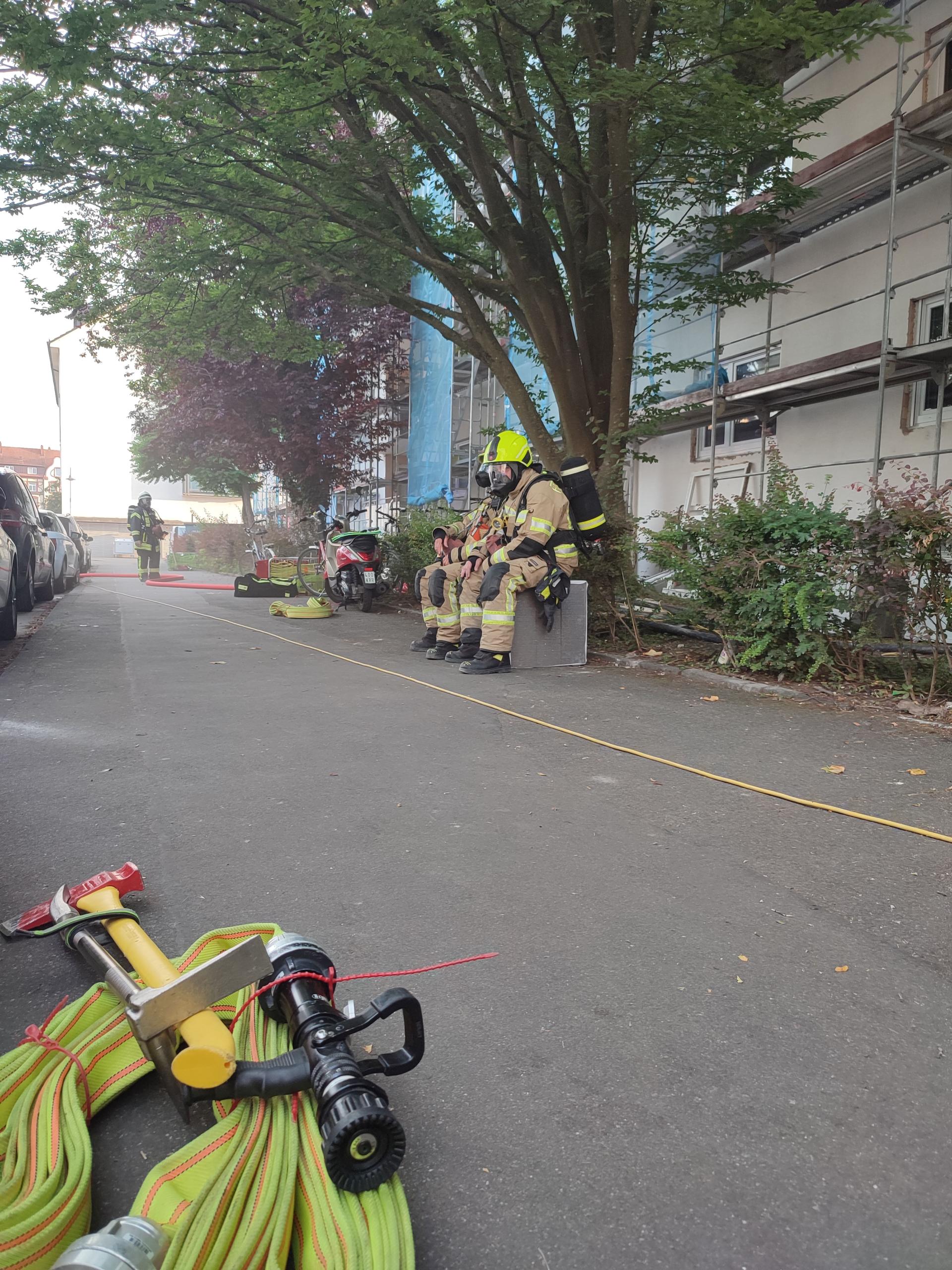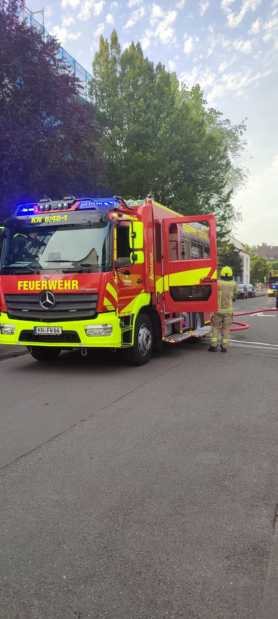 Ein Trupp ging unter Atemschutz in den Keller vor. Ein weiterer Trupp kontrollierte den Treppenraum und die Wohnungen auf weitere Personen. Aufgrund einer Rauchausbreitung in ein angrenzendes Gebäude wurde die Abteilung Petershausen mit zwei Löschfahrzeugen nachalarmiert. Im weiteren Verlauf wurde die Abteilung Allmannsdorf sowie dienstfreies Personal der Hauptamtlichen Wache zur Wachbesetzung und Sicherstellung des Grundschutzes alarmiert. Der Notdienst der Stadtwerke Konstanz stellte in den Gebäuden die Strom- und Gaszufuhr ab.