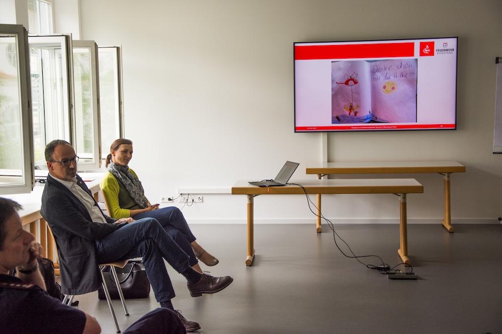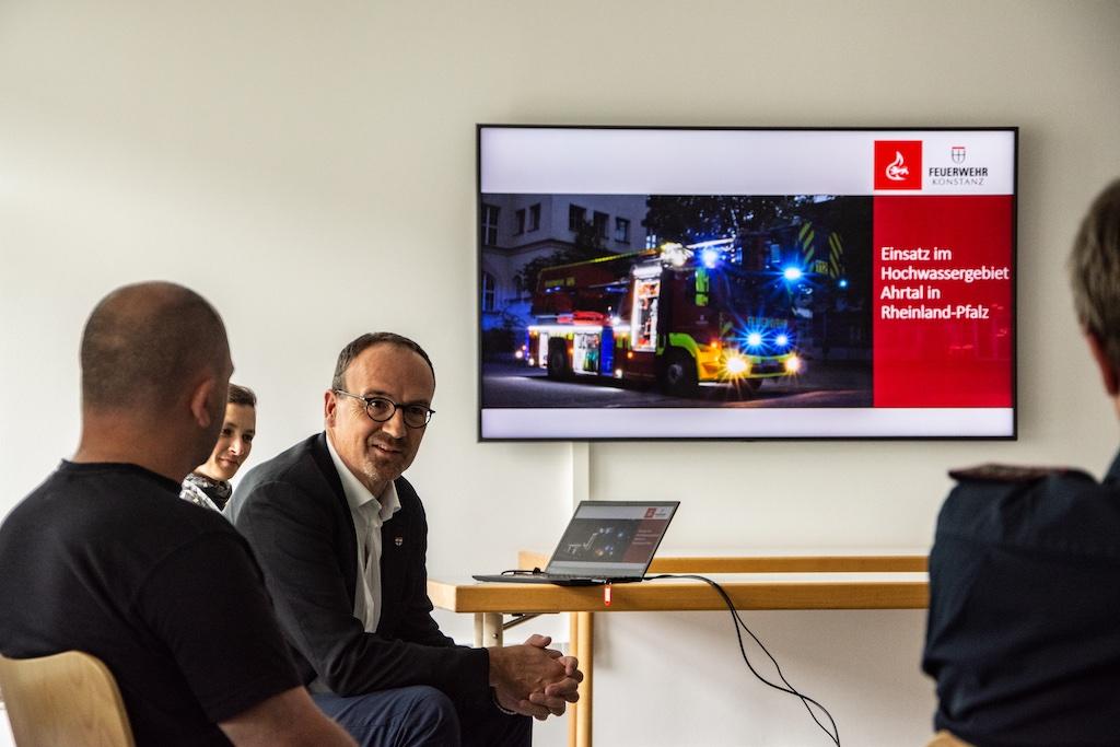 Doch auch die Bilder und Erzählungen der 8 Einsatzkräfte können nicht das wiedergeben, was sie dort erlebt haben. Wie funktioniert die Anforderung im Schadensfall von weiteren Einheiten. Was können wir in der Stadt für einen solchen Fall verbessern? Schnell konnte auch die anwesende Führung der Feuerwehr unseren Oberbürgermeister eine Auskunft geben. Doch auch fragte er: Wie können wir uns vorbereiten, um jederzeit wieder schnell Hilfe zu entsenden? Denn eines hat er zugesichert: wenn jemand bei solchen Situationen und Katastrophen Hilfe braucht, wird die Stadt schauen, wie wir helfen können!