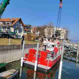 Am 25.03.2022 konnten die Arbeiten erfolgreich abgeschlossen und die Feuerlöschboote wieder Einsatzbereit in den Bodensee eingewassert werden. Amtsleiter Bernd Roth war hierbei ebenfalls vor Ort und dankte allen Helfern der beteiligten Feuerwehren und Firmen für die gute Zusammenarbeit.