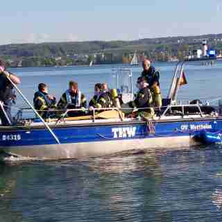 Dabei wurden verschiedene Szenarien auf und am Wasser geübt. An einem Tag unterstütze die Feuerwehr Konstanz bei der Übung. Unter anderem wurde das Übersetzen einer Brandschutzgruppe mit Material inkl. einer Tragkraftspritze geprobt.