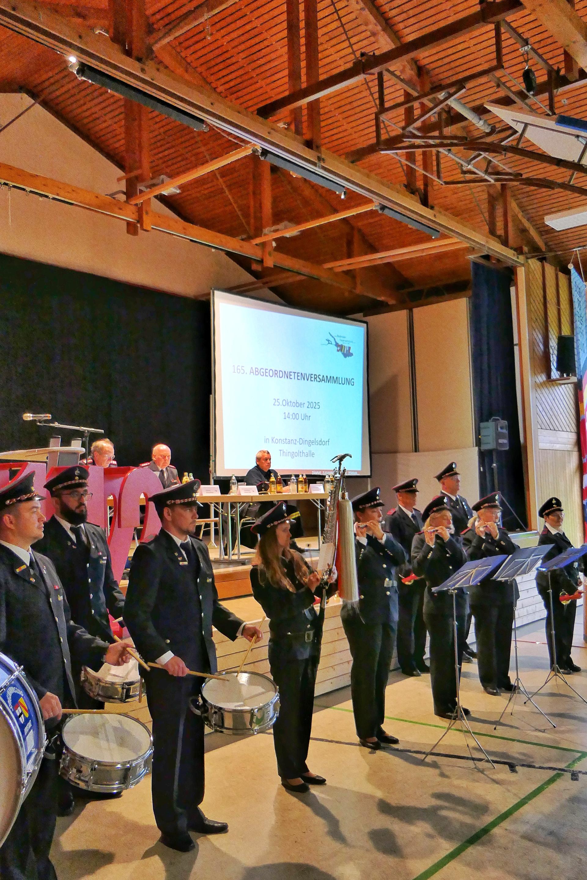 Musikalisch wurde die Versammlung vom Spielmannszug der Feuerwehr Konstanz umrahmt, der mit mehreren Musikstücken für eine stimmungsvolle Atmosphäre sorgte.
