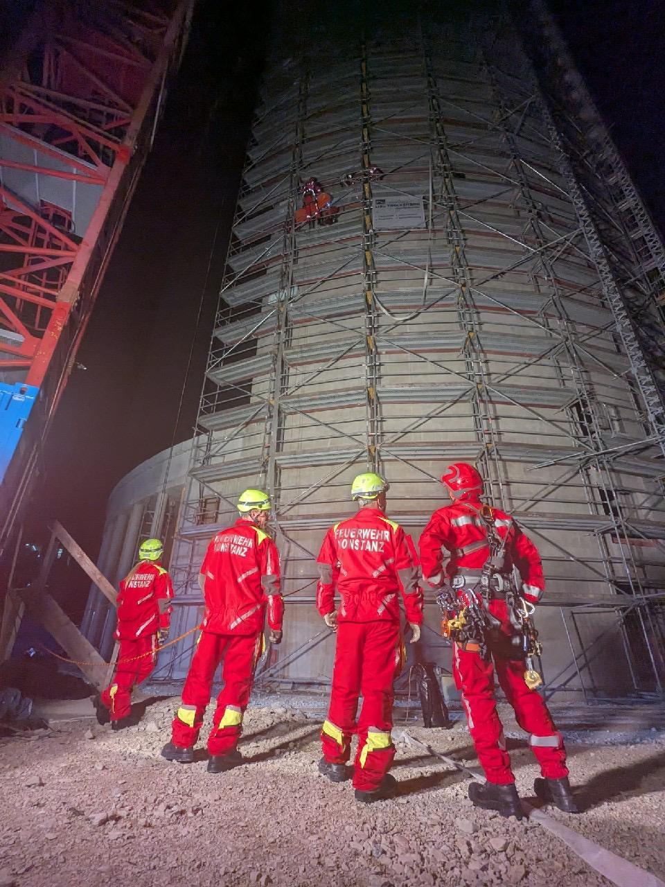 Absturzsicherung der Feuerwehr Konstanz konnte die Person sicher und kontrolliert zu Boden