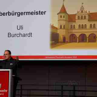 Oberbürgermeister Uli Burchardt würdigte in seinem Grußwort die Arbeit der Feuerwehr als „Vorbild für unsere Gesellschaft“. Er betonte, dass die Feuerwehr Werte wie Zusammenhalt, Hilfsbereitschaft und Verantwortung täglich lebe und damit ein Beispiel für gelebte Gemeinschaft sei. Er sprach den Feuerwehrangehörigen „größten Respekt und Anerkennung“ für ihr unermüdliches Engagement aus und dankte zugleich den Familien und Arbeitgebern, die dieses Ehrenamt durch ihre Unterstützung ermöglichen. Trotz der schwierigen Haushaltslage sichere die Stadt Konstanz zu, auch künftig die notwendigen Mittel bereitzustellen, um die Feuerwehr optimal auszustatten.
