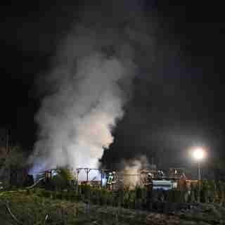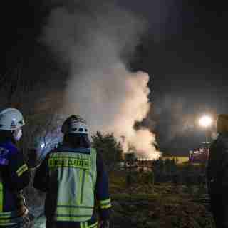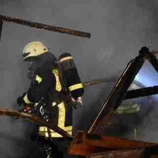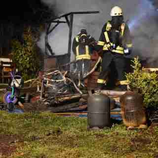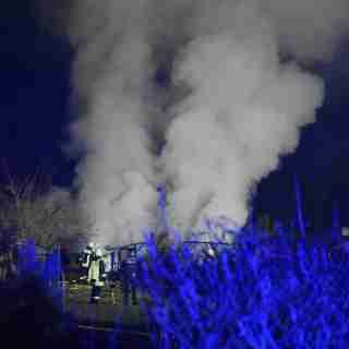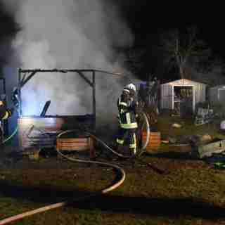 Die Hütte war auf Grund der bereits fortgeschrittenen Brandausbreitung nicht mehr zu retten und brannte vollständig nieder. Jedoch konnte ein Übergreifen des Feuers durch zwei Trupps unter Atemschutz und dem Einsatz mehrerer Strahlrohre verhindert werden. Während der Löscharbeiten wurden zwei Gasflaschen aus der Brandrouine geborgen.