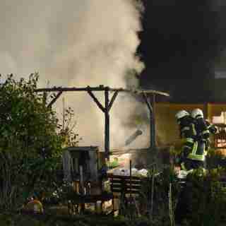 Kurz nach halb 10 Uhr am Samstagabend erhielten die Feuerwehr Konstanz und die Polizei Konstanz Notrufe über eine brennende Gartenhütte im Bereich des Kabislands in Dettingen. Der Löschbereich Dettingen und die hauptamtliche Wache wurden alarmiert und rückten an die Einsatzstelle aus. Vor Ort brannte eine Gartenhütte bereits in Vollbrand, welcher drohte auf die umgebenden Lauben überzugreifen. Zusätzlich wurden in der Hütte noch Gasflaschen vermutet, die bei der Hitzeentwicklung drohten abzuströmen oder zu zerbersten.