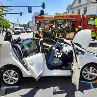 Nachdem das Fahrzeug stabilisiert war, wurde das Dach des Fahrzeugs mit hydraulischen Rettungsgeräten abgenommen. Parallel stellten die Einsatzkräfte der Feuerwehr Konstanz den Brandschutz an der Einsatzstelle sicher und bauten einen Sichtschutz auf.