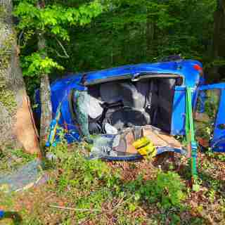 Nach Sicherung des Fahrzeugs, übernahm ein innerer Retter der Feuerwehr die Patientenbetreuung und Erstversorgung. Mit hydraulischen Rettungsgeräten konnte die Person aus dem PKW befreit und an den Rettungsdienst übergeben werden.