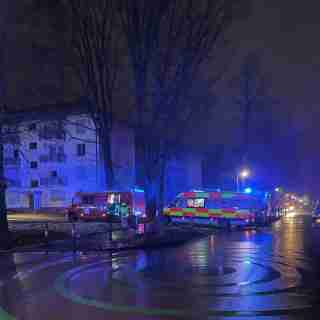 Auf der Anfahrt meldete die Leitstelle einen bestätigten Brand im 2. Obergeschoss, woraufhin seitens des Rettungsdienstes und der Feuerwehr die Einsatzkräfte nochmals verstärkt wurden.