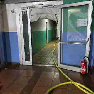 Parallel wurde die Drehleiter in Stellung gebracht und von außen die angrenzenden Zimmer kontrolliert. Zeitgleich kontrollierten weitere Trupps das betroffene und die darüberliegenden Stockwerke auf Personen.