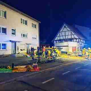Die Radolfzeller Straße war während des Einsatzes für den Verkehr komplett gesperrt. Für die Landung des Rettungshubschraubers wurde die Straße ausgeleuchtet.
