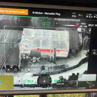 Ein Großaufgebot der Einsatzeinheiten von Malteser und DRK sicherten während des Einsatzes die Einsatzkräfte ab. Die Drohnengruppe des Landkreises unterstützen die Einsatzleitung mit Luftbildern des Gebäudes und mit aufnahmen der Wärmebildkamera.