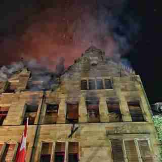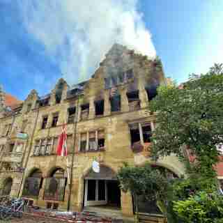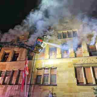 Am Freitag wurde die Gebäudefassade durch eine Fachfirma mit einer Holzkonstruktion gesichert. Diese soll die einsturzgefährdeten Giebel halten, sodass die Fassade des Gebäudes erhalten werden kann. Parallel liefen im hinteren Gebäudeteil weitere Abrissabreiten statt. Hier mussten auch immer wieder aufflammende Glutnester abgelöscht werden.