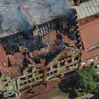 Im Laufe des Samstages konnte die Fassade und die Giebel abschließend gesichert werden. Da weiterhin aber eine Einsturzgefahr besteht kann das Gebäude weiterhin nicht betreten werden.