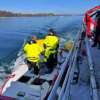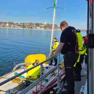 Da zum Zeitpunkt der Havarie eine Bergung aufgrund des starken Wellengangs nicht möglich war und der Wind sowie der Wellengang laut Wettervorhersage noch andauern würden, wurde nach Rücksprache mit der Wasserschutzpolizei (Wapo) und den Bootseignern eine Bergung für Samstagvormittag 04.05.2025 geplant. Da bereits kurz nach dem Stranden schwere Schäden am Rumpf und am Kiel festgestellt wurden, musste eine Bergung mittels Hebesäcken geplant werden. Das gestrandete Boot wurde durch die Wellen so weit an Land getrieben, dass die Wassertiefe um das Segelboot nur noch etwa 50 cm betrug. Eine Bergung über Land wurde aufgrund der Entfernung zum Ufer und der eingeschränkten Zugänglichkeit zum Uferbereich verworfen.