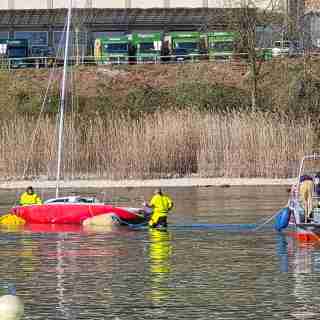 Die Sondereinheit Ölwehr der Feuerwehr Konstanz begann am Samstagmorgen mit der Bergung des Segelbootes. Hierzu wurden das Feuerlöschboot und ein Mehrzweckboot für den Transport des Bergungsmaterials eingesetzt. Unter dem Segelboot wurden vier Hebepontons mit einer Hubkraft von bis zu drei Tonnen angebracht. Das Segelboot konnte so aus dem Flachwasserbereich verbracht werden. Erst im tieferen Wasser war das ganze Ausmaß der Schäden am Rumpf sichtbar. Der Kiel war vollständig abgerissen, und durch die Wellen war ein Loch von fast zwei Quadratmetern in den Rumpf gerissen worden. Dies hatte zur Folge, dass der Havarist ohne Hebesäcke nicht mehr selbstständig schwimmen konnte.