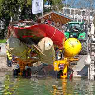 Ein sicheres Auswassern mittels Kran konnte aufgrund der starken strukturellen Schäden am Rumpf ebenfalls nicht gewährleistet werden. Durch die Konstanzer Polywerft konnte ein Spezialtrailer organisiert werden, wodurch ein Auswassern an der Werfteigenen Slipanlage erfolgen konnte. Da für den Transport in die Werft das Passieren der Rheinbrücken notwendig war, musste der Mast des Segelbootes noch auf dem Wasser gelegt werden. Dies konnte mit Hilfe des Kranes auf dem Feuerlöschboot erfolgen.