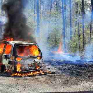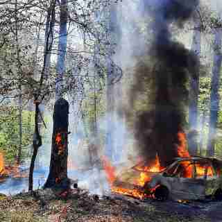 Die daraufhin alarmierte hauptamtliche Wache rückte mit dem Hilfeleistungslöschgruppenfahrzeug (HLF) zum Einsatzort aus. Die erst eintreffenden Kräfte meldeten einen in Vollbrand stehenden PKW direkt am Übergang zum Wald.