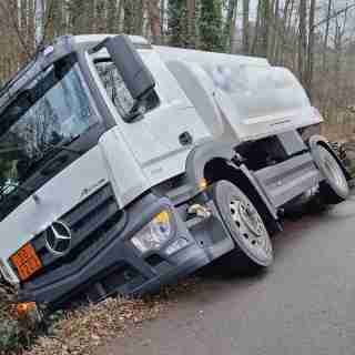 In der Straße „Am Fließhorn“ war ein mit Heizöl beladener Tanklastzug von der Fahrbahn abgekommen und in ein Bachbett gerutscht. Das Fahrzeug kam dort in einer Schräglage von ca. 45 Grad zum Stillstand.