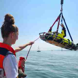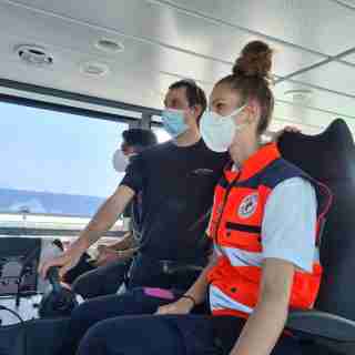 Am Vormittag ging es mit dem Löschboot auf den Bodensee. Es wurden verschiedene Möglichkeiten zur Rettung einer Person aus dem Wasser und die anschließende Versorgung des Verletzten auf dem Boot geübt.