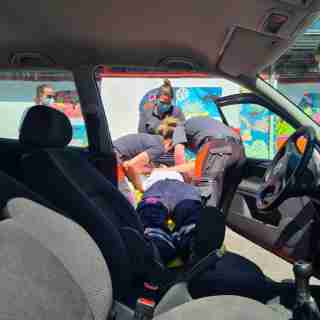 An der zweiten Station wurde an einem PKW die schonende und achsengerechte Rettung nach einem Verkehrsunfall geübt.