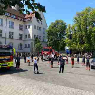 Nach der Mittagspause ging es im Hof hinter der Feuerwache in der Steinstraße weiter. An drei Stationen wurde die Zusammenarbeit und insbesondere die Kommunikation im Rettungsteam geübt.
