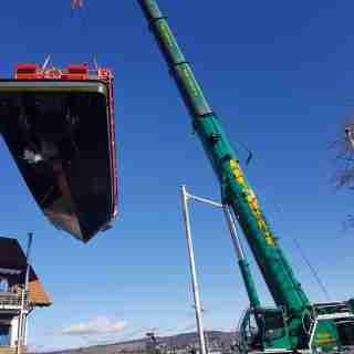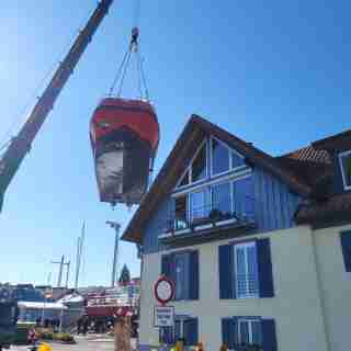 In einem nicht alltäglichen Kranmanöver wurden die drei Boote aus dem Hafenbecken, über eine Straße, an einem Wohnhaus vorbei auf einen Hof gekrant. Hierfür wurde auf der Uferstraße ein 230 Tonnen Autokran aufgebaut. In dieser Zeit war die Straße voll gesperrt.