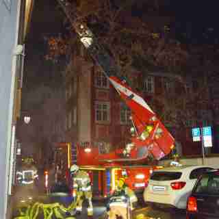 Im Hinterhof musste nach kurzer Zeit ebenfalls eine Steckleiter in Stellung gebracht werden. Weitere eingesetzte Kräfte retteten hier eine Person aus dem ersten Obergeschoss über die Leiter.