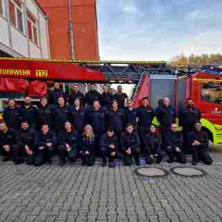 Bei der Urkundenübergabe waren auch Kommandanten und Führungskräfte benachbarter Feuerwehren sowie der Löschzüge anwesend.