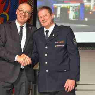Er dankte den Anwesenden Kameraden für ihr großes Engagement, welches zu Sicherheit der Bürger und Bürgerinnen der Stadt beitrage. Ebenfalls lobte er die Zusammenarbeit mit anderen Organisationen bei gemeinsamen Übungen und Einsätzen.