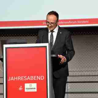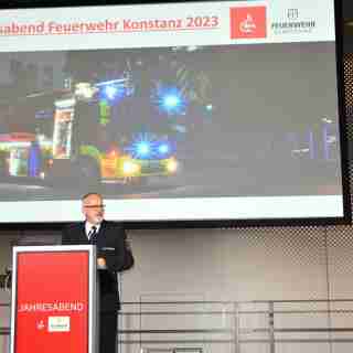 Oberbürgermeister Uli Burchardt wendete sich danach an die Kameraden. Er schloss sich ebenfalls den Worten von Heiko Auer an und betonte, dass die Feuerwehr ihm sehr wichtig sei und Konstanz eine starke Feuerwehr habe. In den letzten Jahren konnten einige Meilensteine, Verbesserungen und Neuanschaffungen für die Feuerwehr getätigt werden. So wurde zum Beispiel dieses Jahr das neue Feuerwehrhaus für die Abteilung Dettingen-Wallhausen gebaut. Dieses soll demnächst einzugsbereit sein.