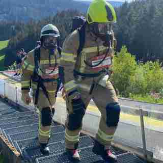 Ziel war es so schnell wie Möglich mit Feuerwehrausrüstung und angeschlossenem Atemschutzgerät die dortige Ski-Schanze mit ihren 632 Treppenstufen zu erklimmen.