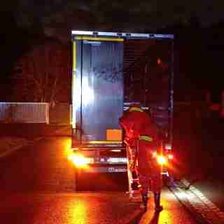 Ein Trupp, welcher unter Atemschutz die Erkundung im Gefahrenbereich fortsetzen, konnte die Lage bestätigen. Aus einem 1000 Liter IBC Container trat ein unbekannter Stoff aus. Ebenfalls konnte der Trupp die Ladepapiere im Fahrzeug ausfindig machen und diese der Einsatzleitung zur Verfügung stellen. Durch den Fachberater Gefahrstoff wurde die Einheitsführung zum Umgang mit dem Stoff beraten.