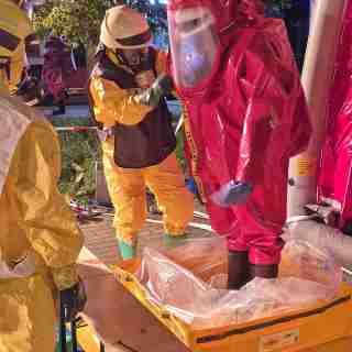 Während des Übungsverlaufs wurde die Lage durch die Übungsleitung erweitert: Auf dem Speditionsgelände wurde ein weiterer beschädigter Behälter mit einer auslaufenden Ammoniaklösung angenommen. Auch dieser wurde umgehend erkundet und fachgerecht gesichert.Nach erfolgreichem Abschluss aller Maßnahmen fand eine gemeinsame Nachbesprechung statt, in der die Abläufe, Erkenntnisse und Übungsziele ausgewertet wurden.